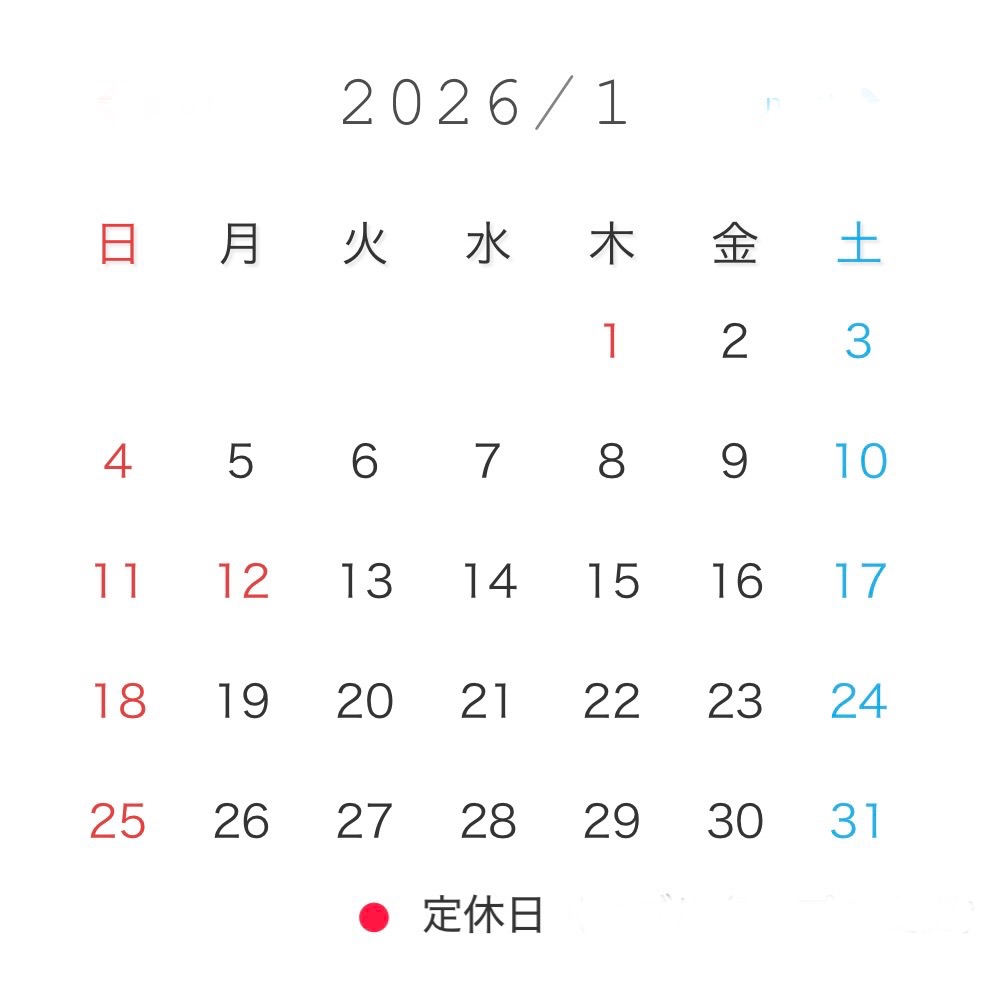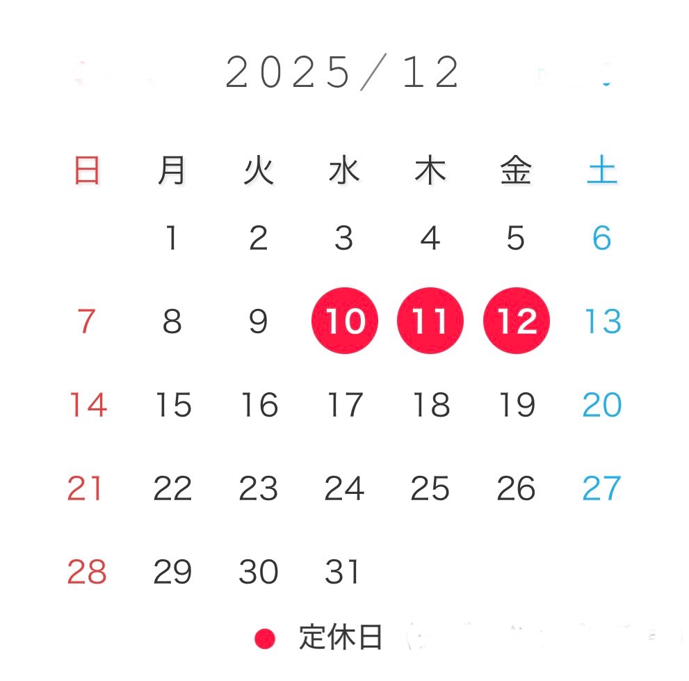 12月・1月のお休みは、12月10日(水)から12日(金)の三日間だけです。
