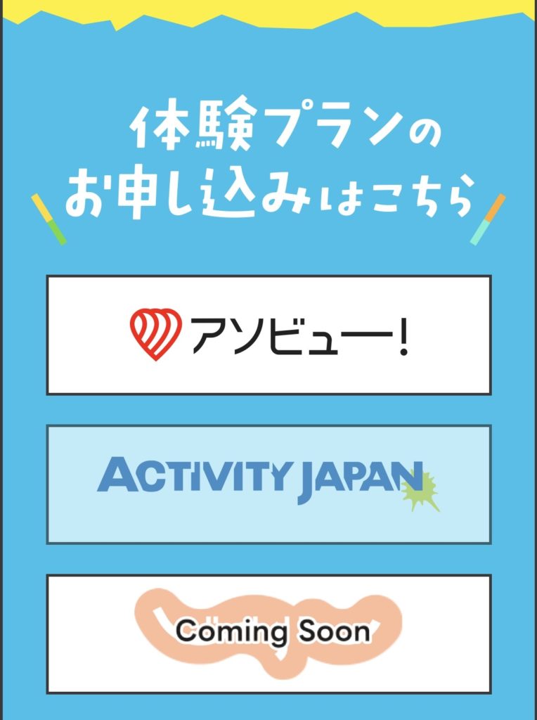 ①じゃらん②アソビュー③アクテビティジャパン